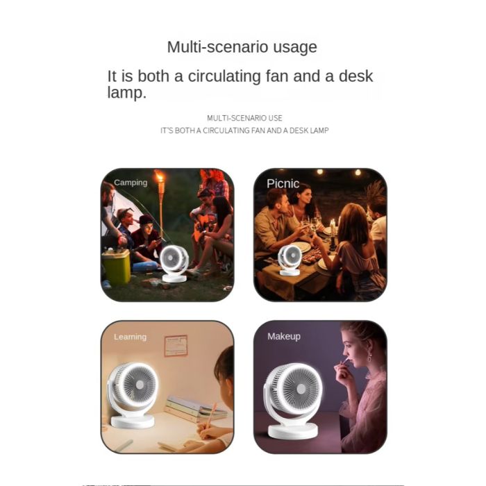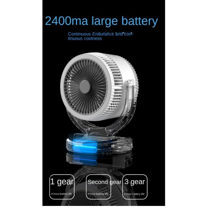 - مروحة قابلة للشحن قوة 5 واط مع إضاءة LED ودوران 360 درجة