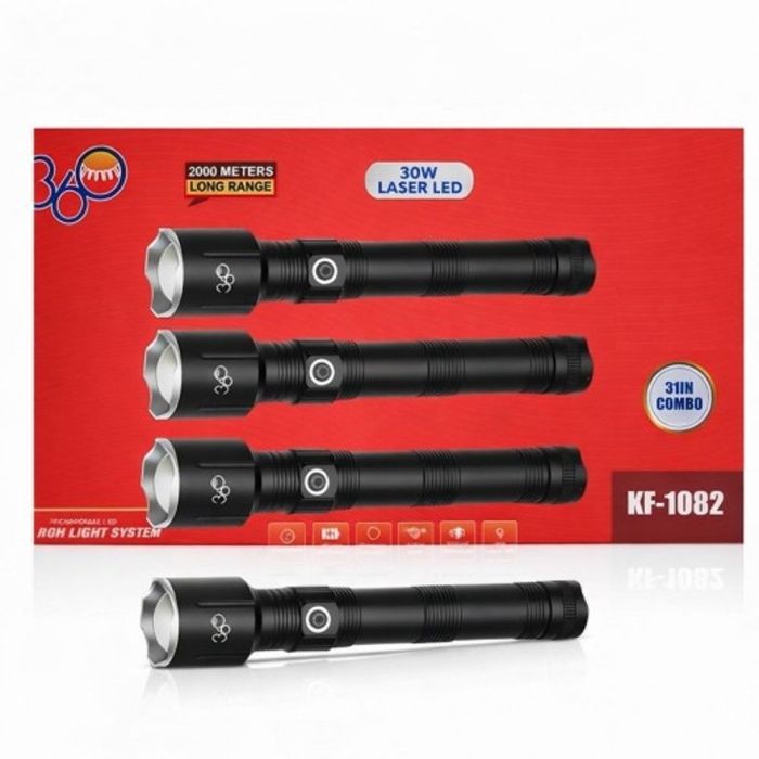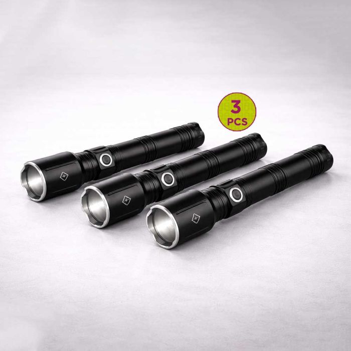 طقم من 3 مصابيح يدوية بقوة 30 واط لكل مصباح يوفر شعاعاً قوياً بعيد المدى وإضاءة 360 درجة. يشحن عبر USB دون الحاجة لبطاريات، ويتيح 3 أوضاع إضاءة تناسب التخييم والطوارئ والاستخدام اليومي. مقاوم للماء والصدمات للمغامرات في أي ظرف.