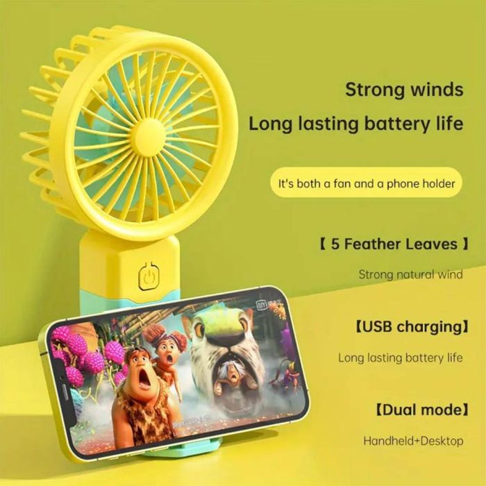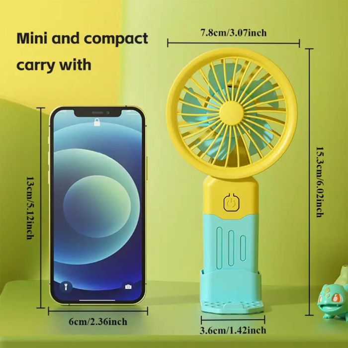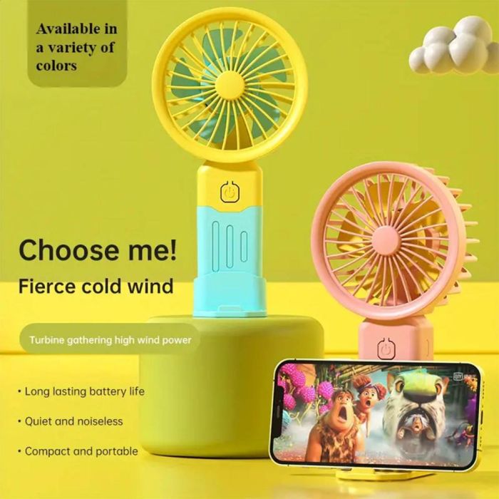 - مروحة يدوية قابلة للشحن بقاعدة هاتف - ألوان متنوعة