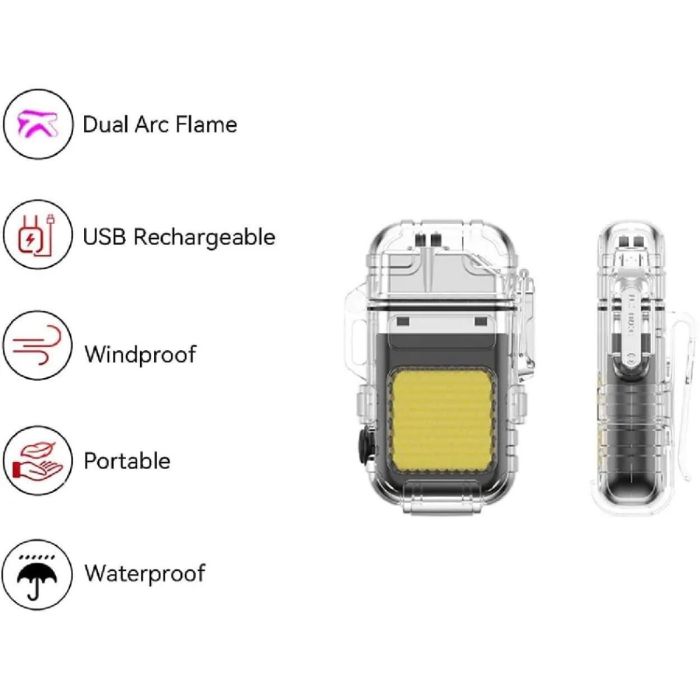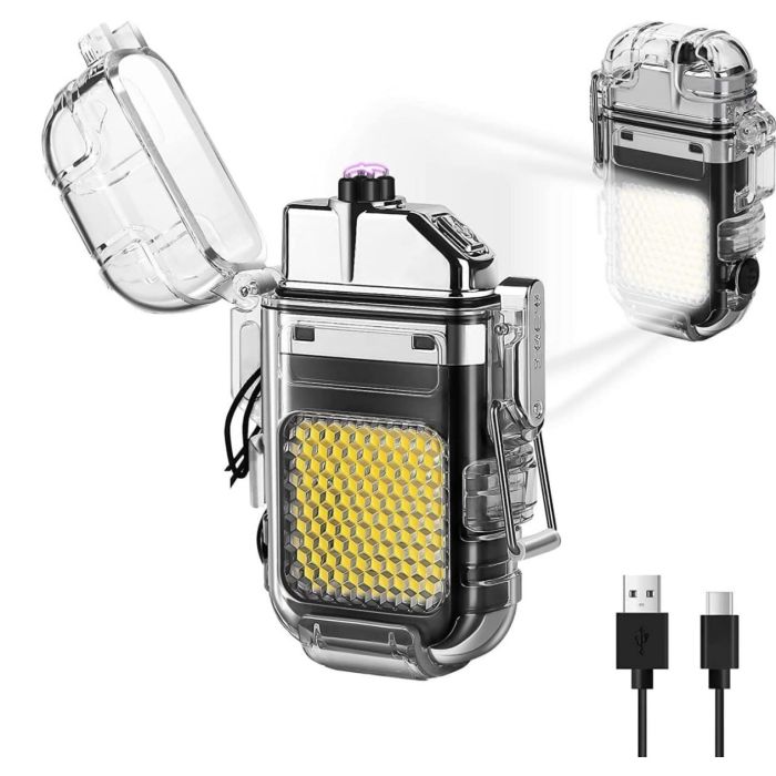 - تصميم 2 في 1 يجمع بين مصباح LED وولاعة بلازما مقاومة للهواء للاستخدام العملي في الخارج والطوارئ.