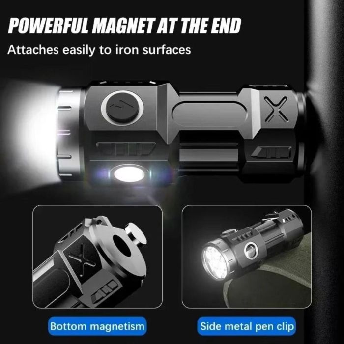 كشاف LED قوي وقابل لإعادة الشحن عبر USB، مزود بقاعدة مغناطيسية للتركيب اليدوي متعدد الاستخدامات والإضاءة في جميع الاتجاهات.
