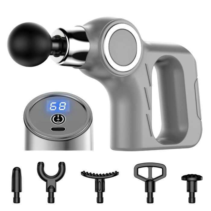 مسدس تدليك قابل للشحن مع 6 رؤوس وشاشة LCD