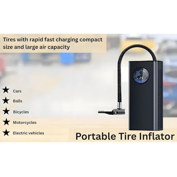 - مضخة هواء صغيرة قابلة لإعادة الشحن للسيارة بسعة 3000 مللي أمبير مع شاشة عرض