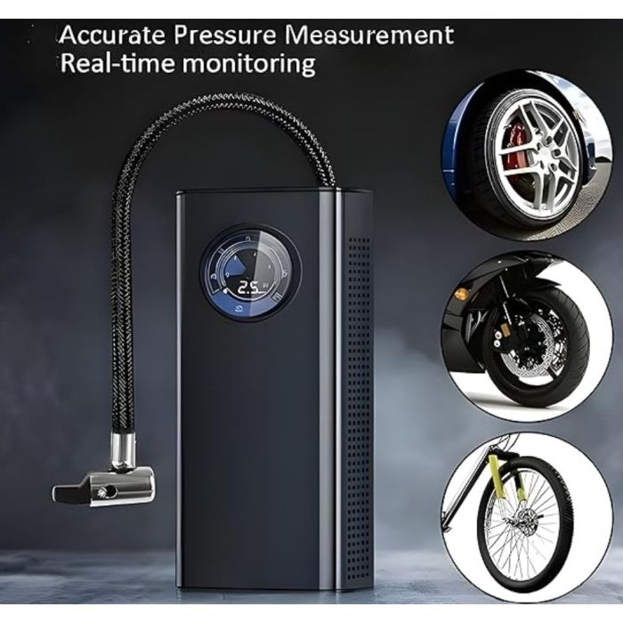 استمتع بالراحة والاعتمادية مع مضخة الهواء الصغيرة للسيارة بقدرة ضغط تصل إلى 150 PSI وبطارية قابلة للشحن بسعة 3000 مللي أمبير. تتميز بشاشة رقمية LED دقيقة، وفوهة معدنية متينة، وتصميم مدمج يسهل حمله في أي مكان. توفر خاصية الإيقاف التلقائي عند الوصول إلى الضغط المطلوب أماناً إضافياً، بينما يضمن نظام النفخ السريع دقة وكفاءة عالية.