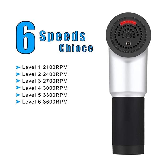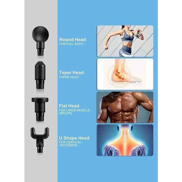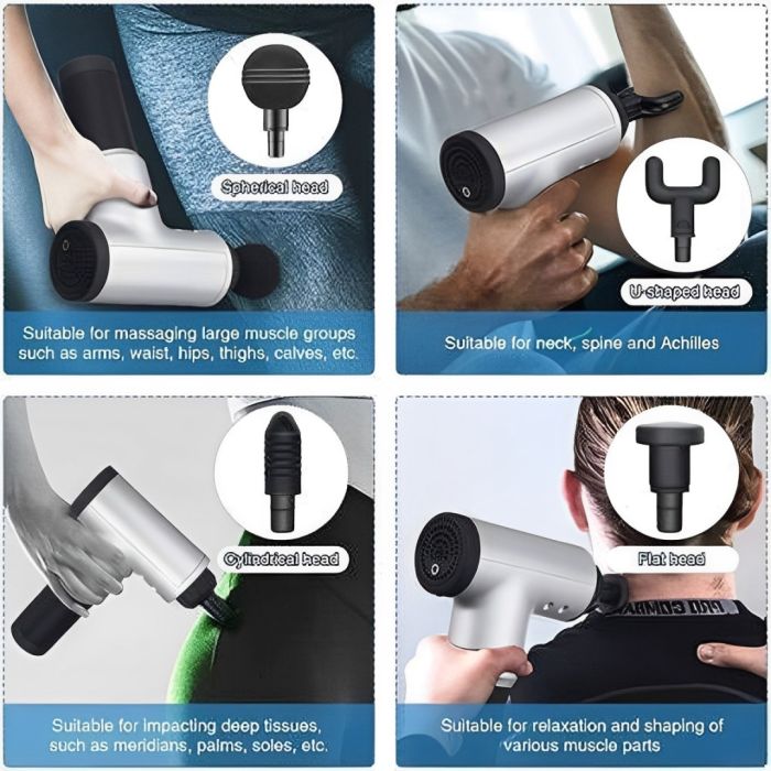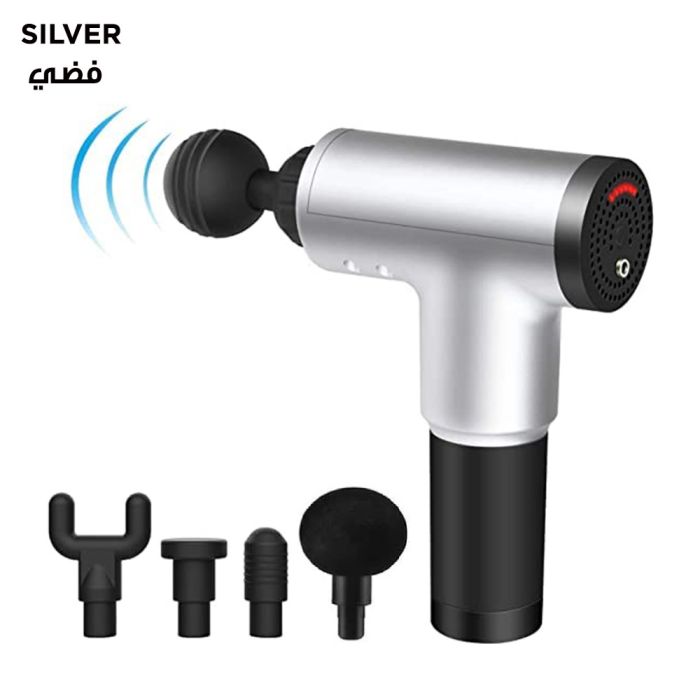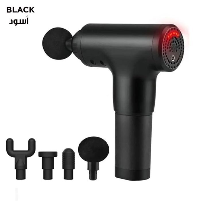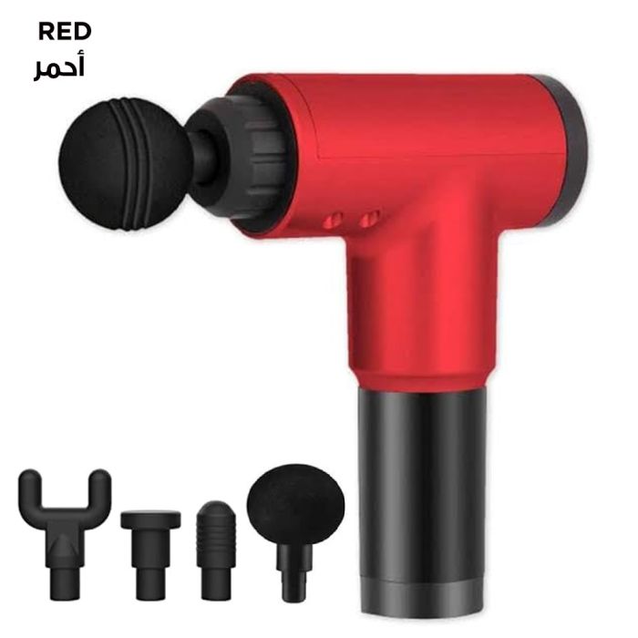 - مسدس تدليك العضلات والأنسجة العميقة قابل للشحن مع 4 رؤوس تدليك