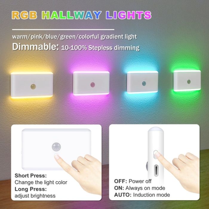 - كشاف LED RGB قابل للشحن بمستشعر حركة