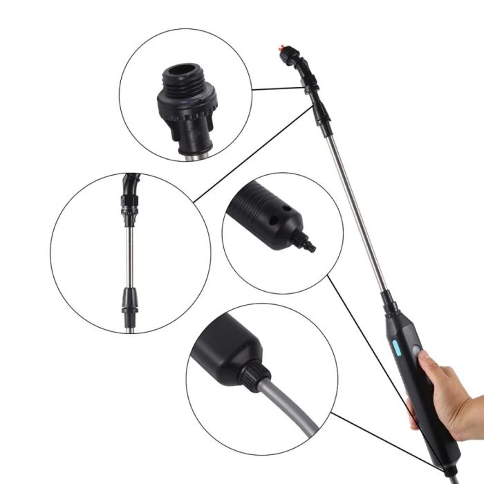 - عصا رش تلسكوبية قابلة للتعديل ومصنوعة من ستانلس ستيل للوصول للأماكن المرتفعة.