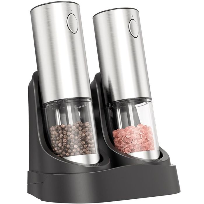 تقدم هذه المطحنة القابلة لإعادة الشحن تجربة تتبيل سهلة من خلال طحن آلي يعمل بالجاذبية يبدأ بتحريك الميلان. صنعت من الفولاذ المقاوم للصدأ الأنيق وتحتوي على بطارية قابلة للشحن عبر USB‑C مع مؤشر LED للشحن. مزودة بقفل أمان لمنع التشغيل غير المقصود، بينما تتسع العلبة الصغيرة بسعة 95 مل للتوابل اليومية. تصميمها خفيف ومريح ويضفي أناقة وراحة لأي مطبخ.