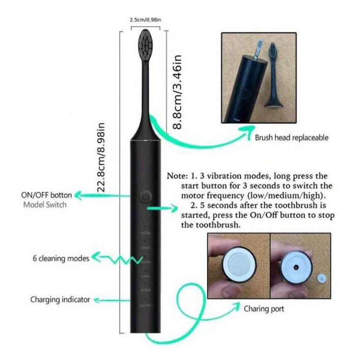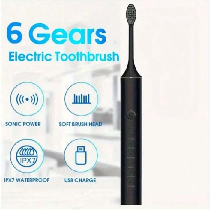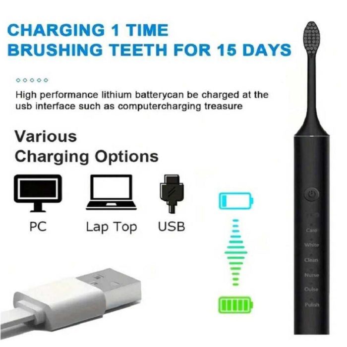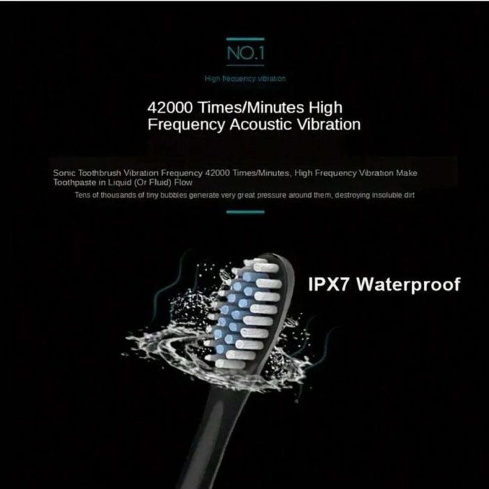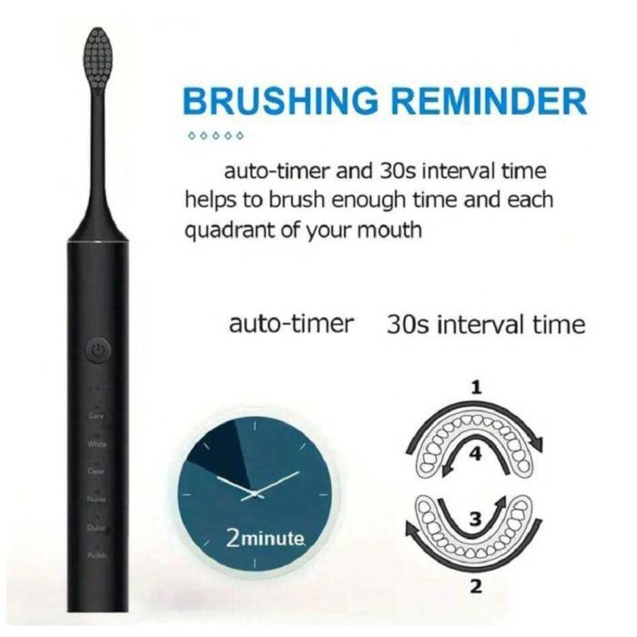 حافظ على ابتسامتك المشرقة كل يوم، تعمل الفرشاة بتقنية الموجات الصوتية المتطورة على إزالة المزيد من البلاك والجير بشكل فعال، تتميز بـ 6 أوضاع للتنظيف، موتور قوي ينتج 42,000 ذبذبة في الدقيقة. إمكانية التشغيل حتى 15 يوم بشحنة واحدة مدة 4 ساعات، مقاومة للماء IPX7 مع شعيرات ناعمة
