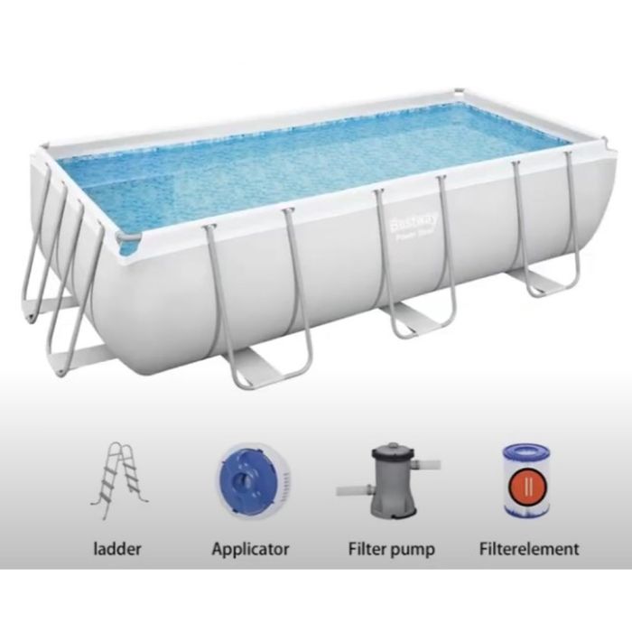 - حوض استحمام مستطيل بإطار فولاذي مع مضخة تصفية وسلم سعة 6478 لتر