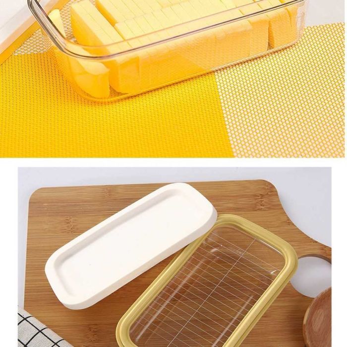 - علبة تخزين وتقطيع زبدة وجبن مستطيلة