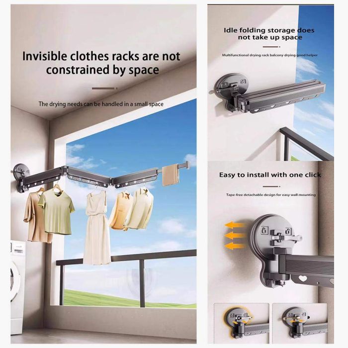 - رف تجفيف ملابس قابل للسحب مع تثبيت بالشفط