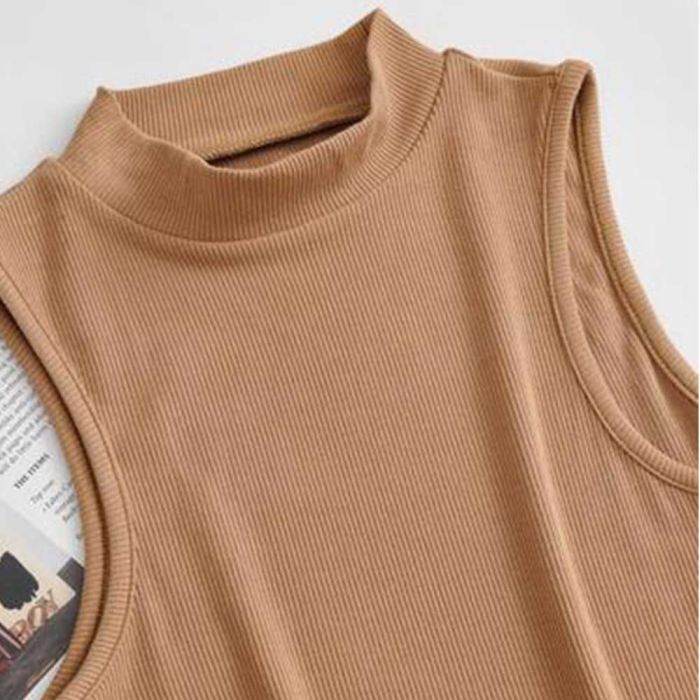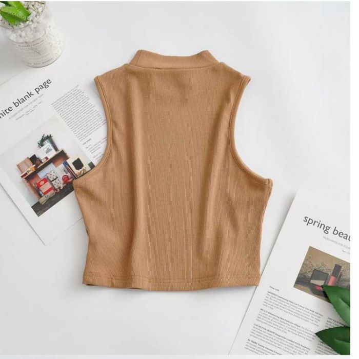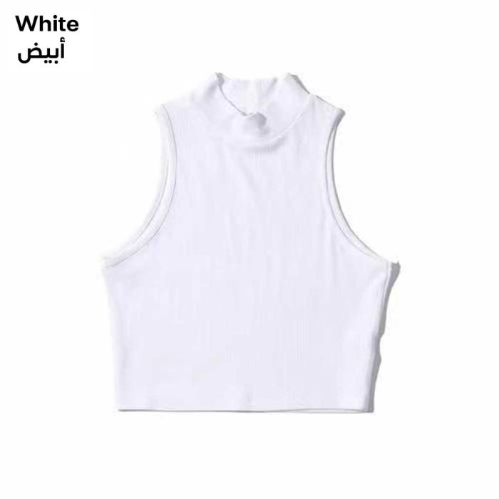 توب قصير بياقة ريترو بدون اكمام للسيدات