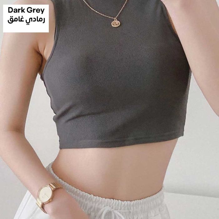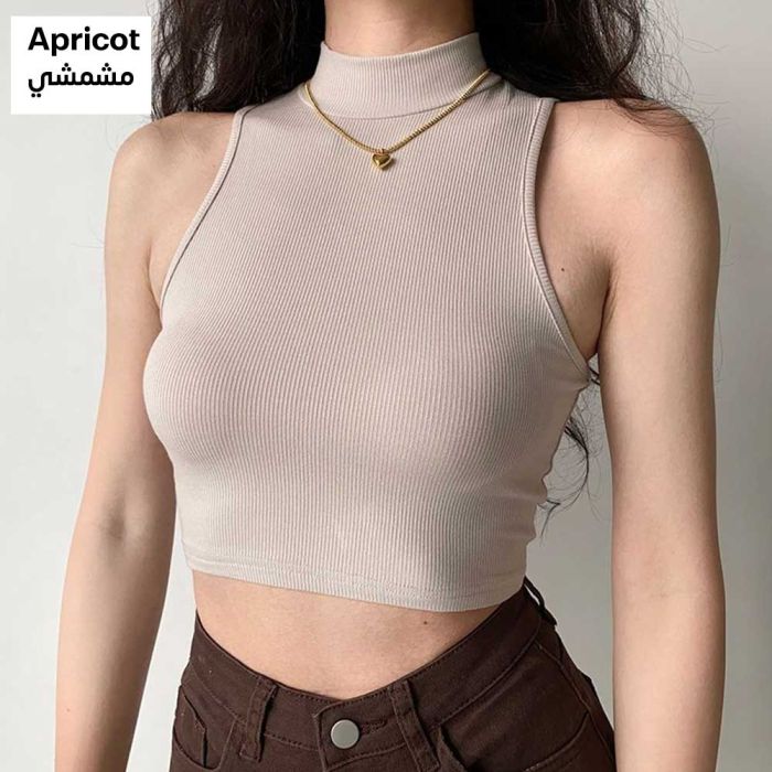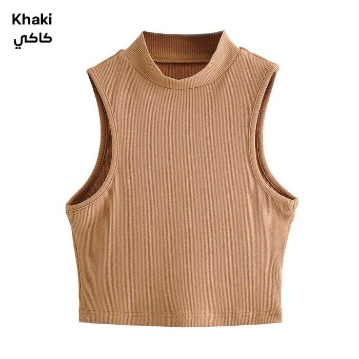 - توب قصير بياقة ريترو بدون اكمام للسيدات
