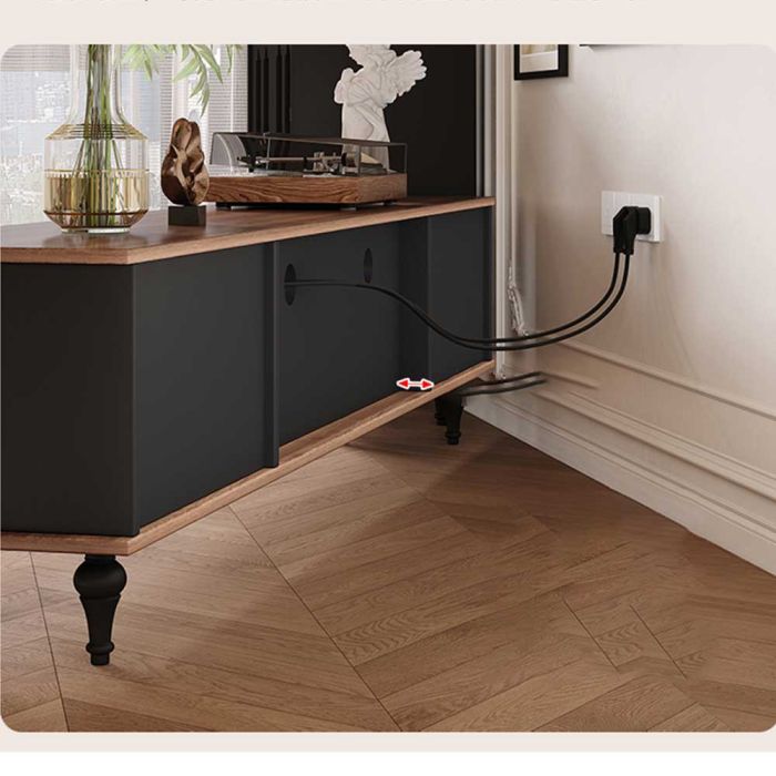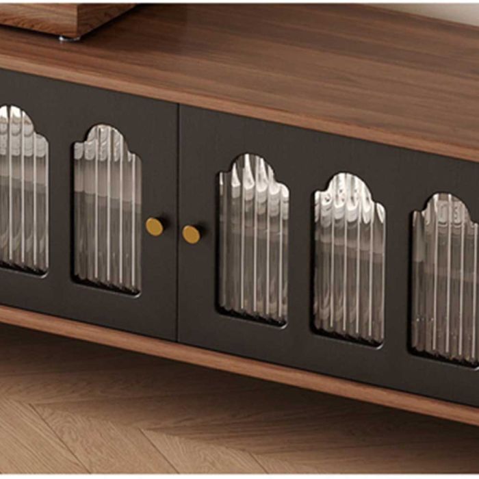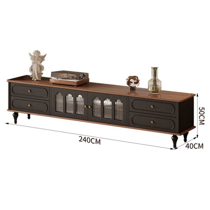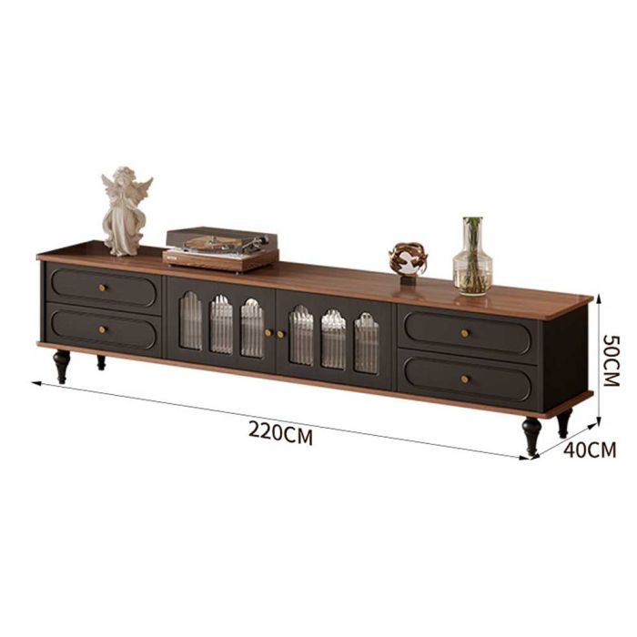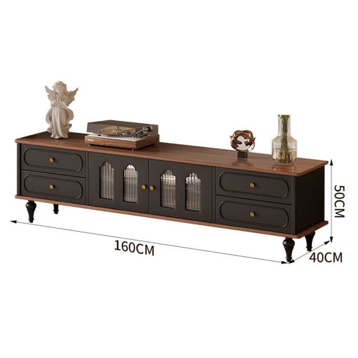 طاولة تلفزيون كلاسيكية خشبية مع 4 أدراج وأبواب مزدوجة