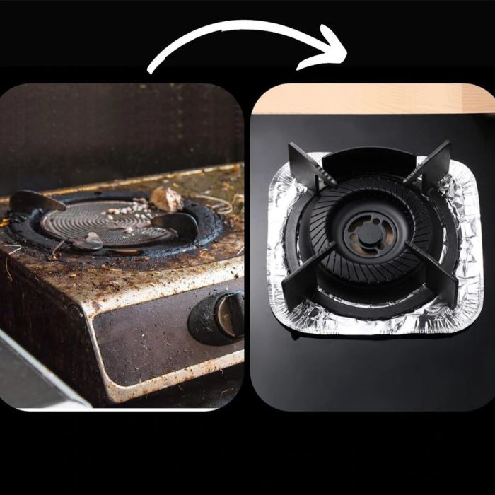حافظ على نظافة موقدك مع هذه العبوة المكونة من قطعتين من أغطية الشعلات غير اللاصقة القابلة لإعادة الاستخدام. مصنوعة من ورق ألومنيوم مقاوم للحرارة، تمنع الشحوم والانسكابات وبقايا الطعام من تلطيخ موقدك - ما عليك سوى وضعها وتنظيفها وإعادة استخدامها.