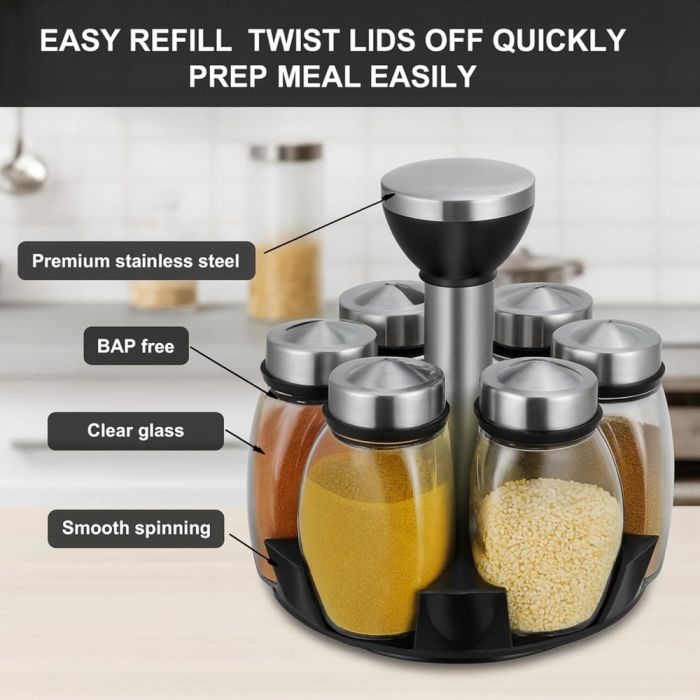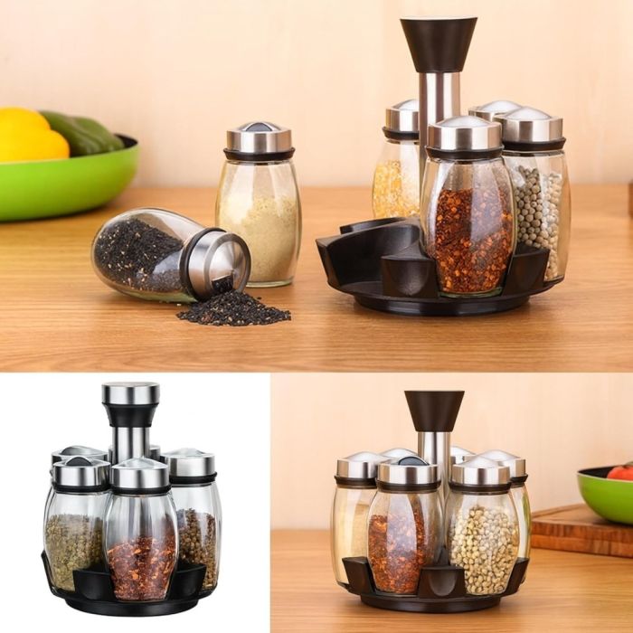 منظم توابل دوار مع 6 مرطبان