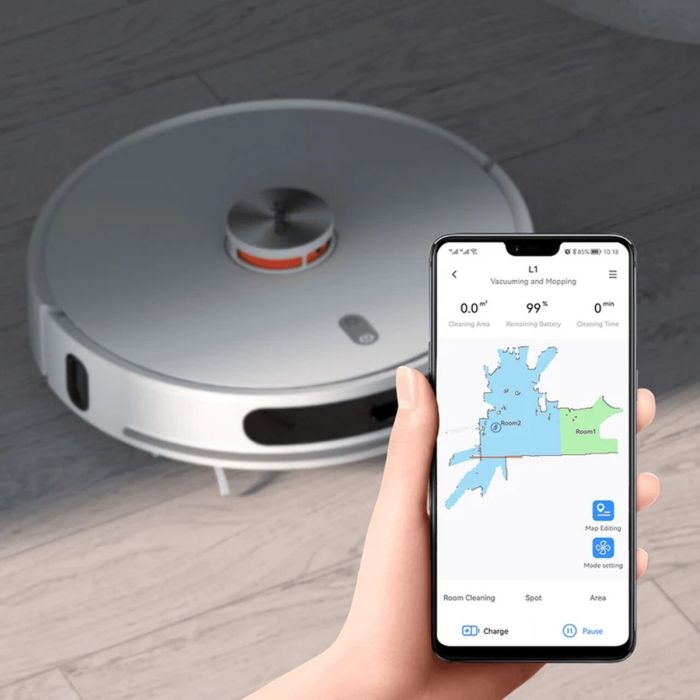 - تحكم عبر التطبيق مع جدولة وتنظيف حسب الغرف ومناطق محظورة وتنبيهات صوتية.