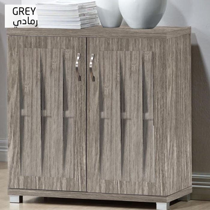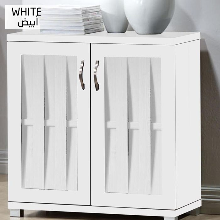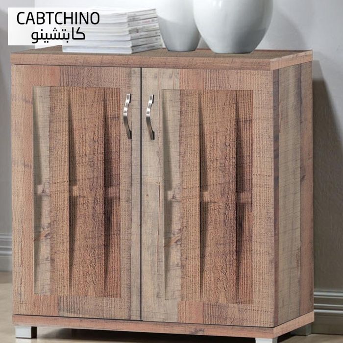 طاولة عملية وعصرية لعرض الأواني، الكتب، الزينة، أو الهدايا، مع أبواب ومساحة مناسبة لأي زاوية في المنزل.