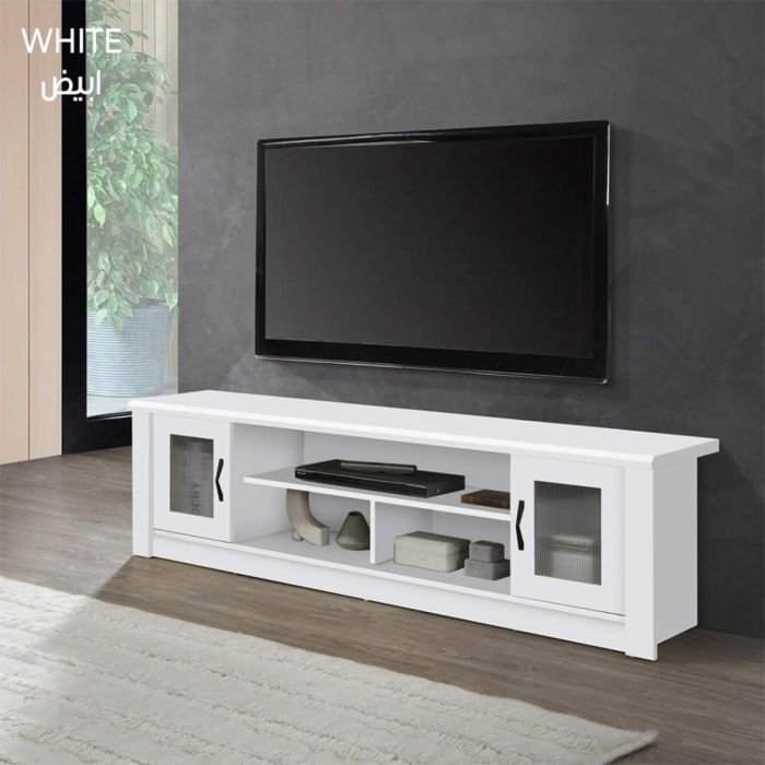 طاولة تلفزيون بتصميم بسيط وعصري تساعدك تجعل ركن الترفيه مرتبًا وتتناسب بسهولة مع أي أسلوب ديكور في الغرفة ومع باقي الأثاث. مقاسها المتوازن يجعلها إضافة ديكورية ممتازة لغرفة النوم وغرفة المعيشة وغرفة الميديا والمكتب وحتى المساحات بطابع فندقي، لتبدو منطقة التلفزيون أكثر ترتيبًا ووضوحًا. مصنوعة من خشب صناعي عالي الجودة لتقديم ثبات ومتانة للاستخدام اليومي لفترة طويلة، وتوفر مساحة عملية لأجهزة DVD والأقراص والريموت والرسيفر أو الكيبل بوكس وأجهزة الألعاب وقطع الديكور. تصميمها على شكل خزانة موفرة للمساحة يساعد على تقليل إشغال المكان وترك مساحة أرضية أكبر بدون التضحية بالوظيفة.