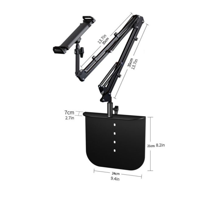 ستاند تابلت بمشبك دوار مع ذراع مفصلي وقاعدة معدنية