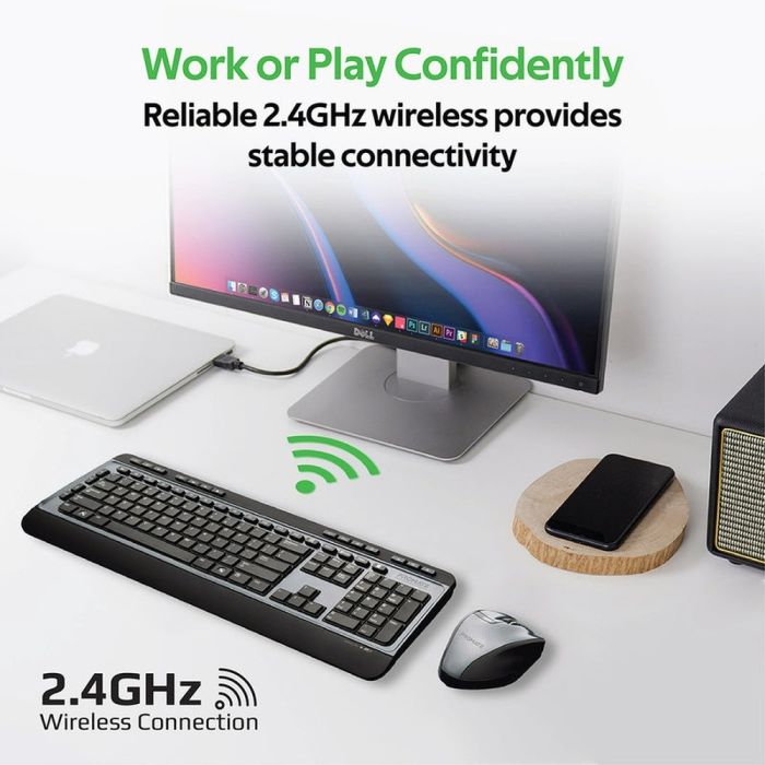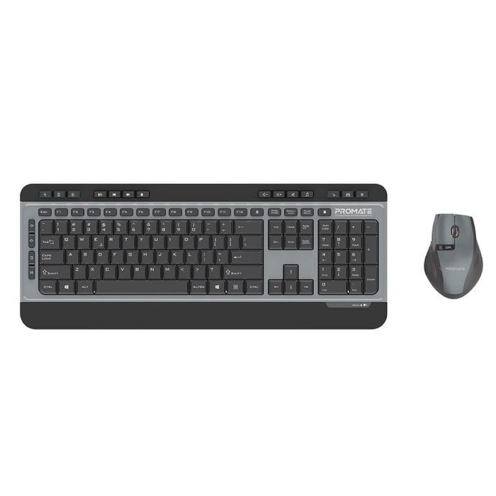 احصل على تجربة استخدام سلسة ودقيقة مع طقم لوحة مفاتيح وماوس لاسلكي من Promate. مثالي للمكتب والدراسة والألعاب، مع بطاريات طويلة العمر وتصميم مريح للاستخدام اليومي.