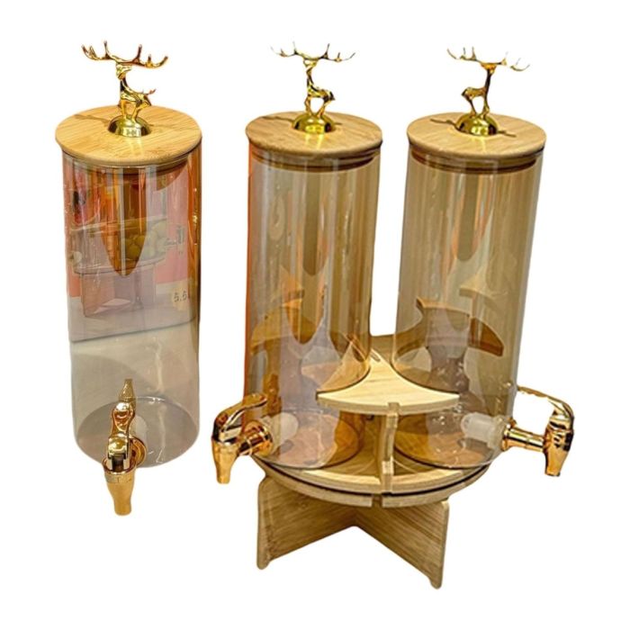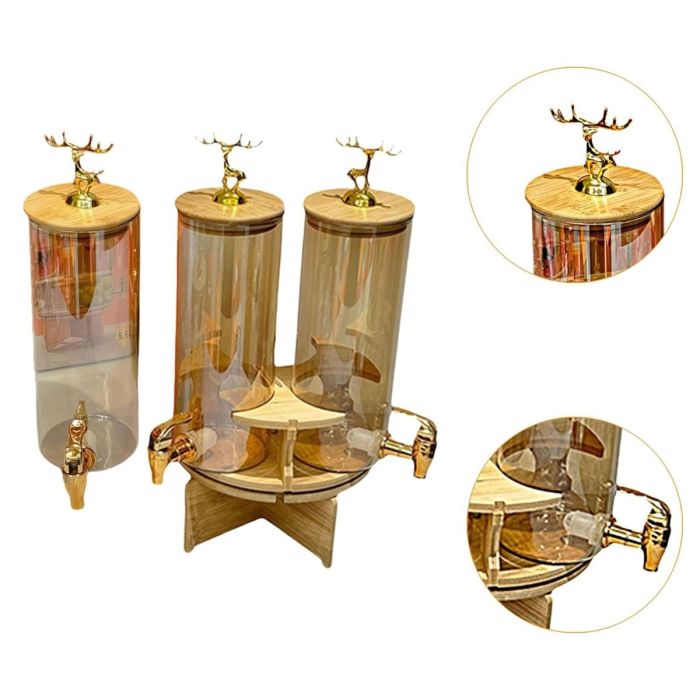 موزع مشروبات دوار 3 في 1 مع قاعدة خشبية وصنابير