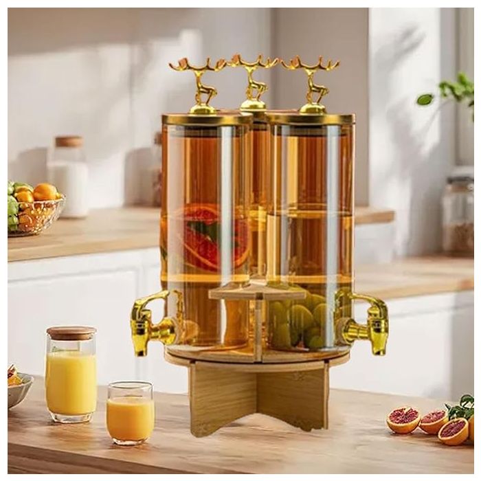 - موزع مشروبات دوار 3 في 1 مع قاعدة خشبية وصنابير