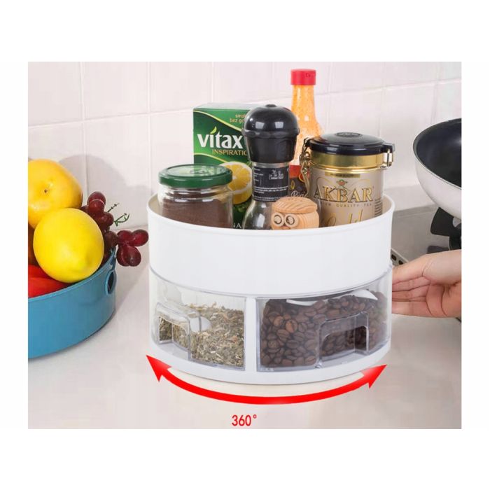 قم بتنظيم مطبخك بطريقة ذكية وفعالة مع منظم التوابل والمواد الغذائية الدوار. يتميز بتصميم أنيق ودوران سلس يتيح لك الوصول السريع إلى جميع العناصر المخزنة. يحتوي على أدراج شفافة لتخزين الأعشاب، التوابل، أو الحبوب، مما يحافظ على ترتيب مطبخك ويوفر مساحة أكبر. كما يوفر لك الراحة والسهولة في الاستخدام اليومي، سواء كنت تحضر وجبة سريعة أو تجمع البهارات لأطباقك المفضلة.