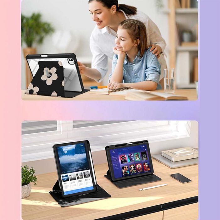 - غطاء حماية دوار بتصميم Flower للآيباد