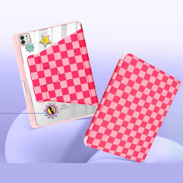 - غطاء حماية دوار بتصميم Pink Squares للآيباد