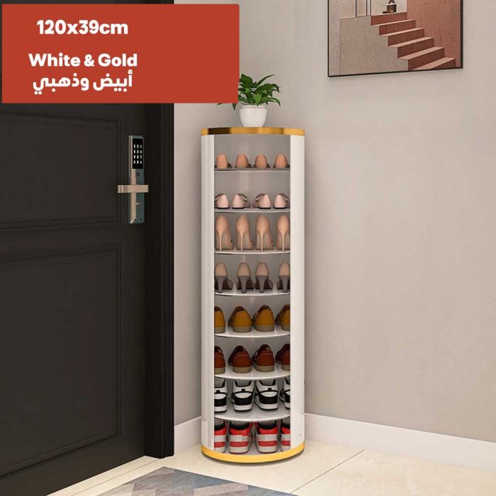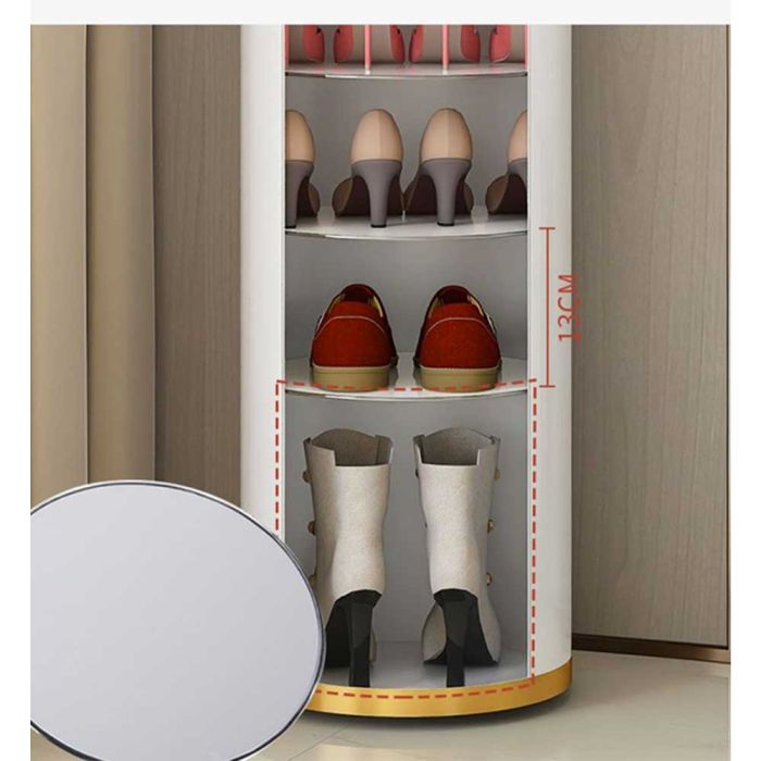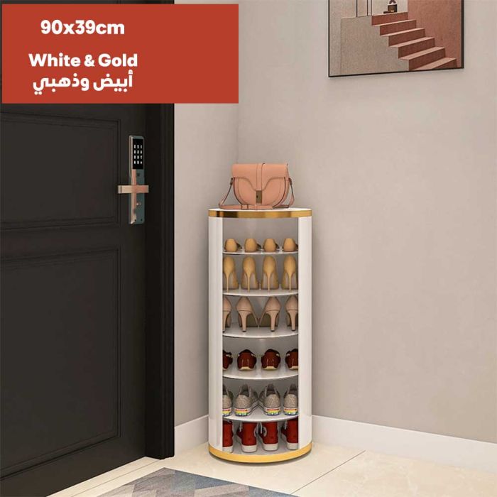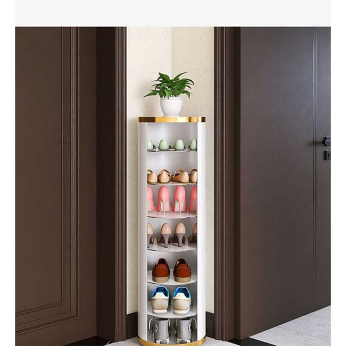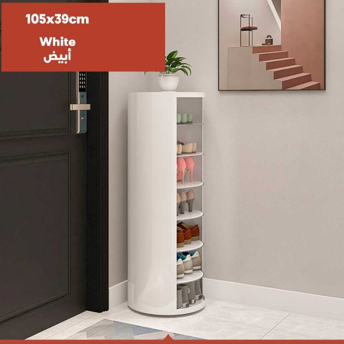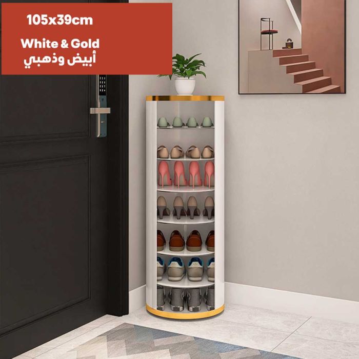منظم أحذية دوار لمدخل المنزل مصنوع من الفولاذ، بتصميم دائري دوار أنيق، يوفر تخزيناً متعدد الطبقات في مساحة صغيرة، مما يحافظ على جودته، لمدخل عصري ومنظم، تخزين ذكي بلمسة جمالية.