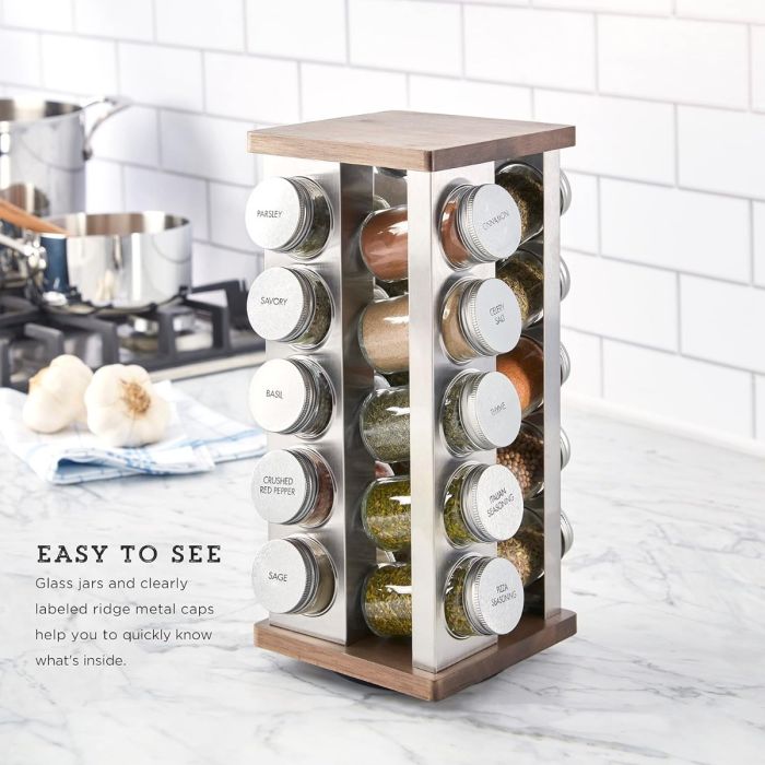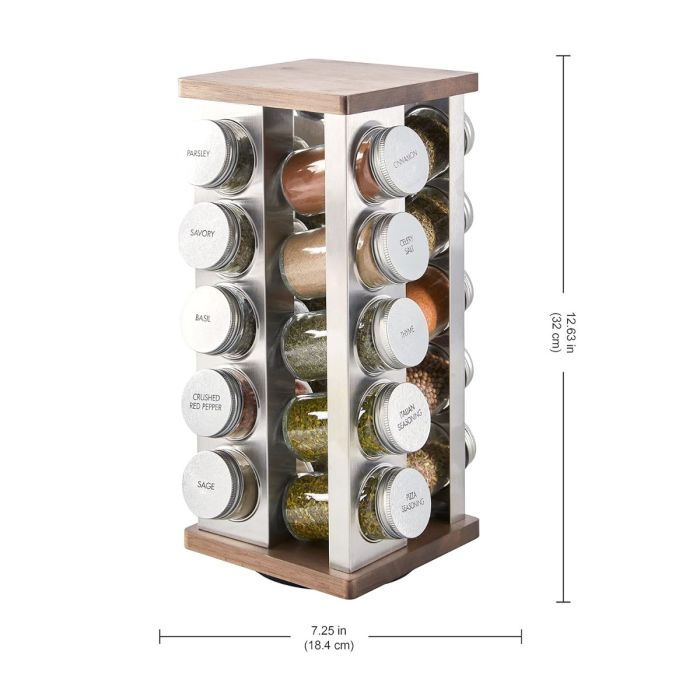 - منظم توابل دوار 360 درجة مع 20 برطمان زجاجي 18 × 32 سم