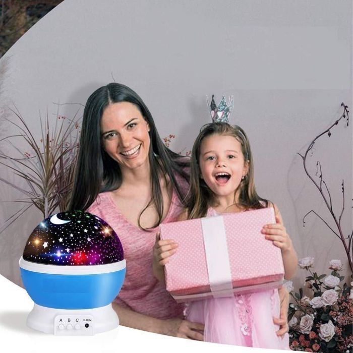 يحوّل هذا المصباح الساحر أي غرفة إلى عرض كوني خلاب، مما يجعلك تشعر وكأنك تستلقي تحت سماء مرصعة بالنجوم. بفضل عرضه البانورامي الدوار بزاوية 360 درجة ووجود أربع لمبات LED مدمجة، فإنه يلقي بمجموعة حيوية من النجوم والأقمار المتلألئة والمتحركة على جدرانك وسقفك. إنه المصباح الليلي المثالي للأطفال الذين يخافون من الظلام، حيث يوفر إضاءة مريحة غير مبهرة.