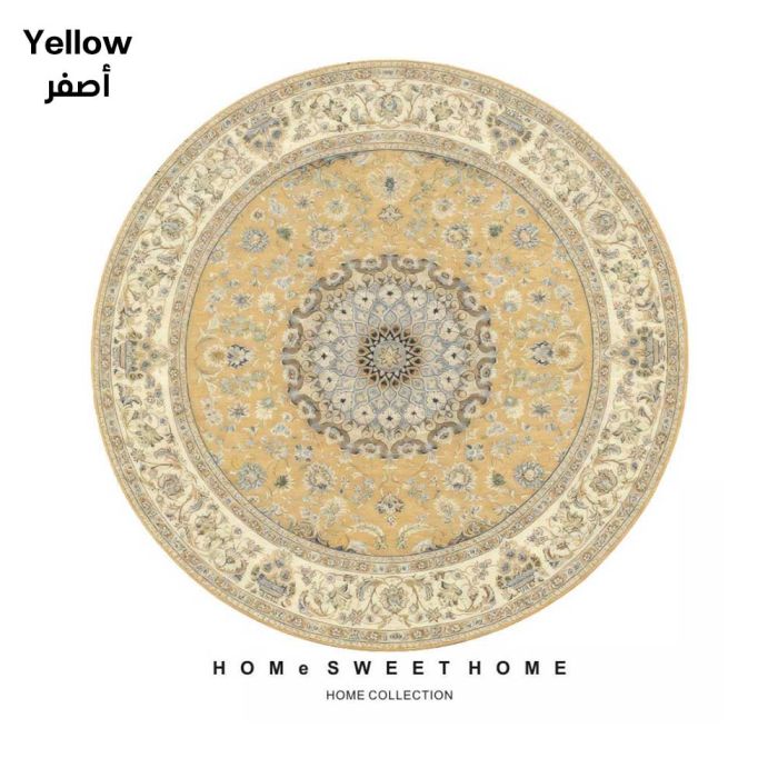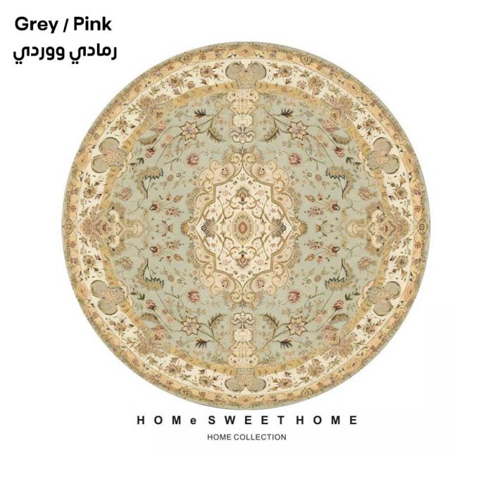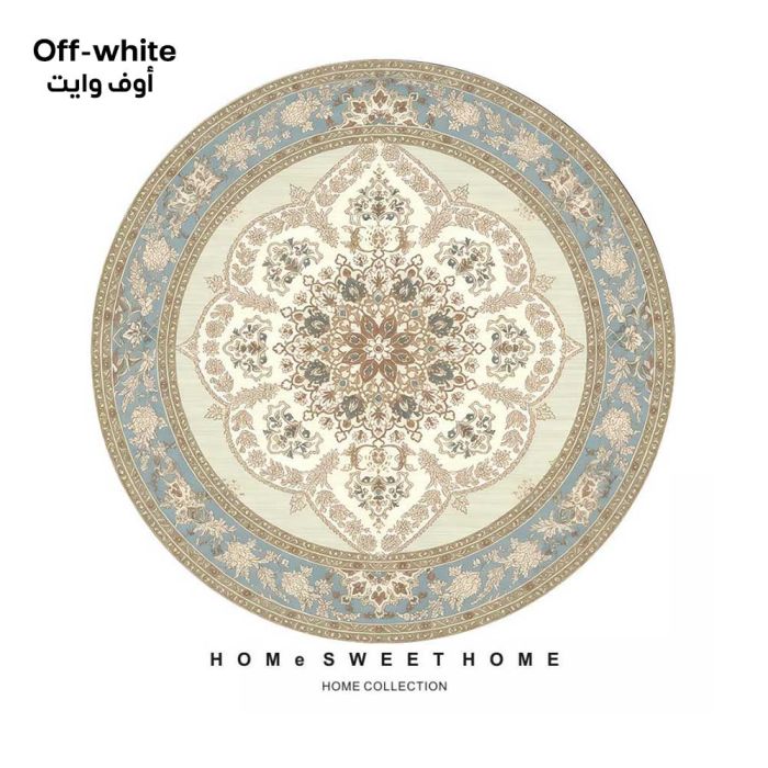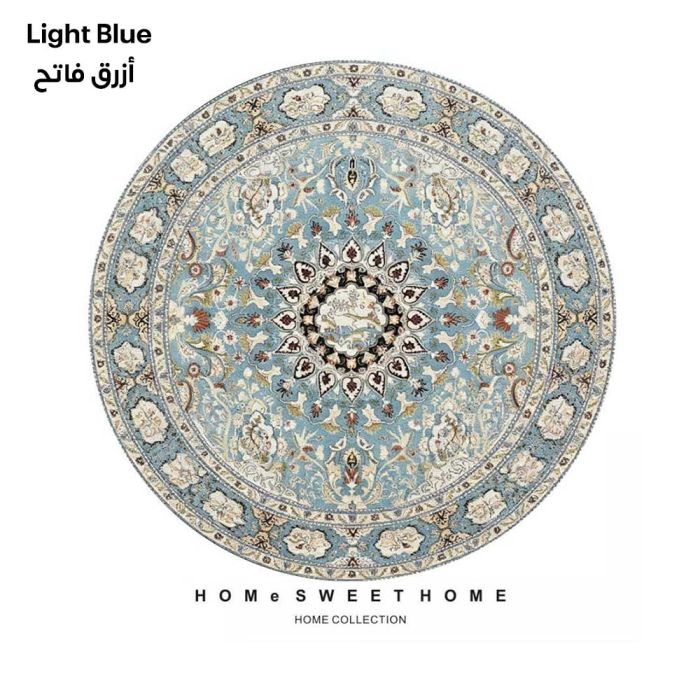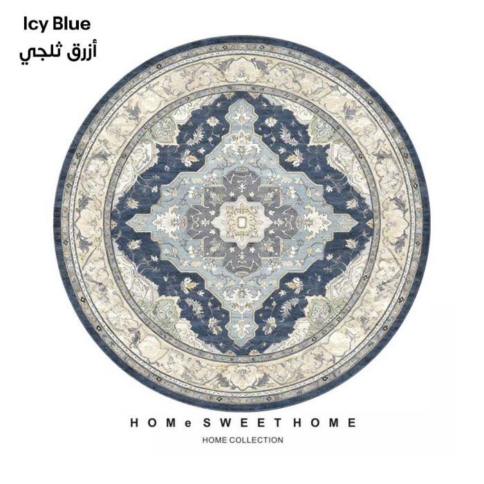 سجادة دائرية بتصميم تراثي مصنوعة من مخمل الكريستال الفاخر، تمنحك ملمساً حريرياً فائق النعومة مع نقوش كلاسيكية جذابة، تضفي فخامة فورية على المكان، سهلة العناية وتحافظ على جودتها، مثالية لإضافة لمسة جمالية دافئة لمنزلك