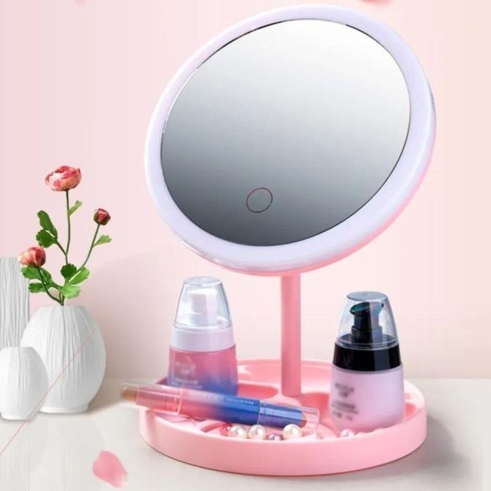 - مرآه مكياج دائرية بإضاءة LED وقاعدة تخزين