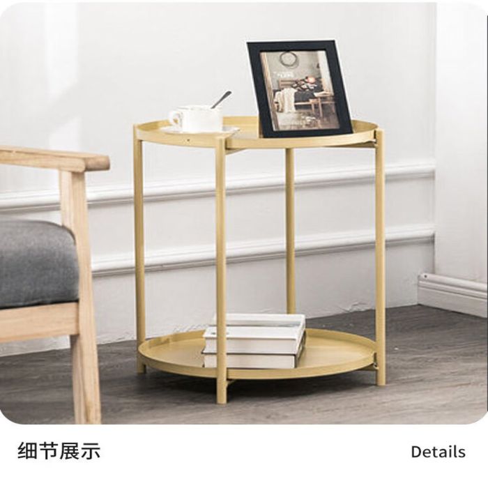 - طاولة دائرية معدنية مع رف تخزين سفلي - 52 × 42 سم