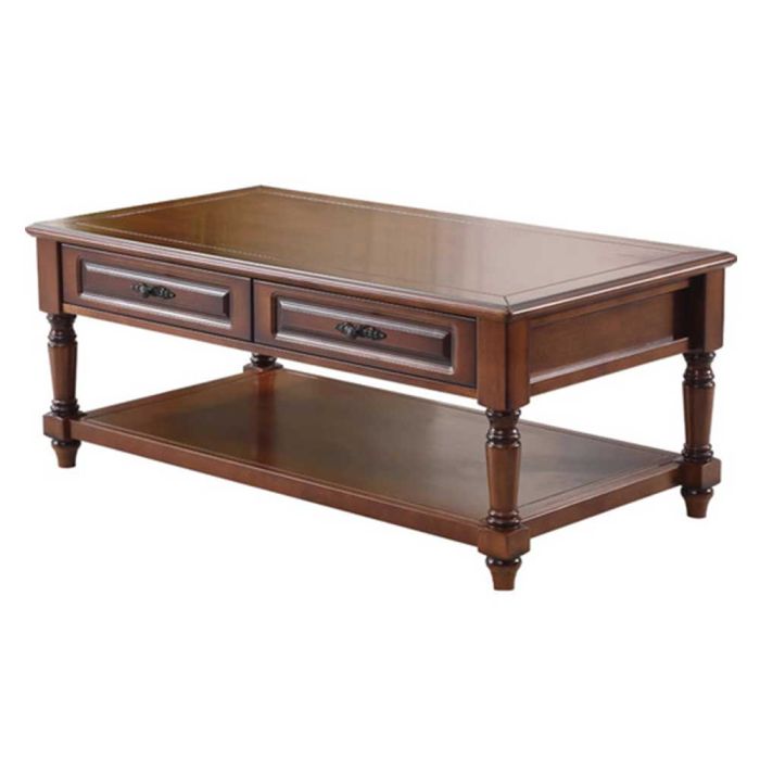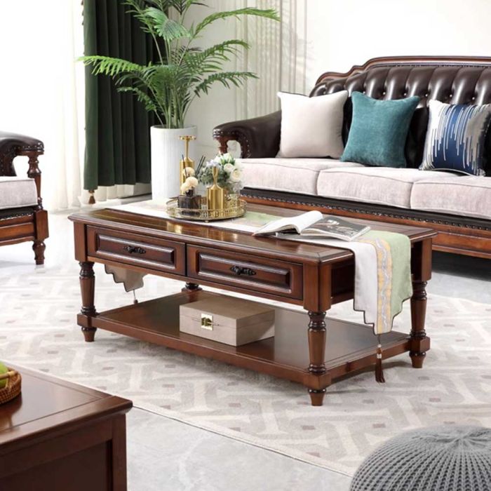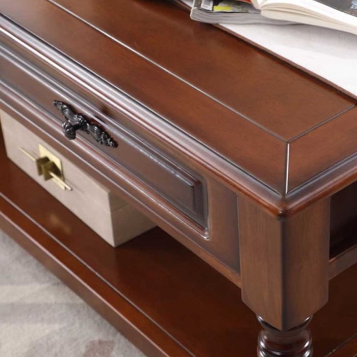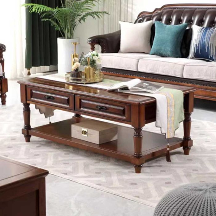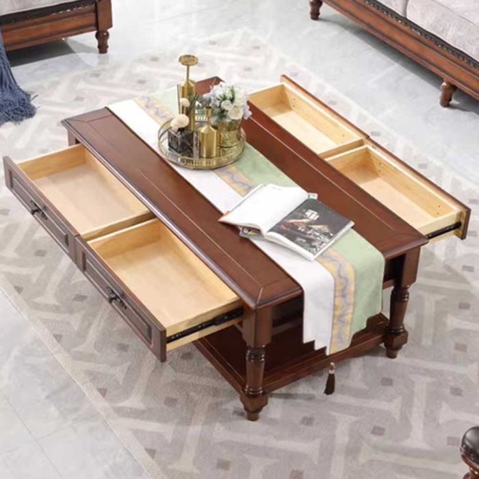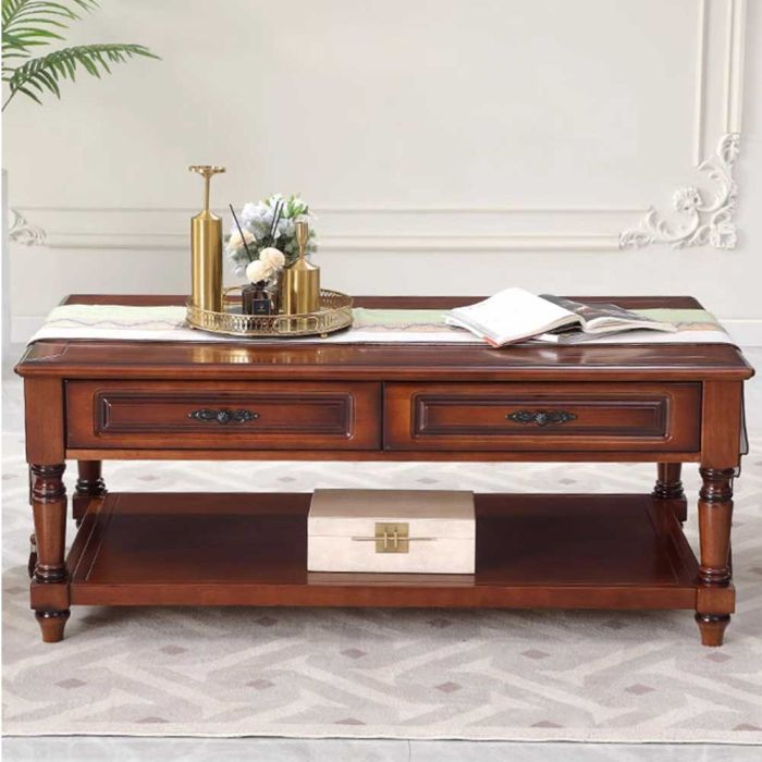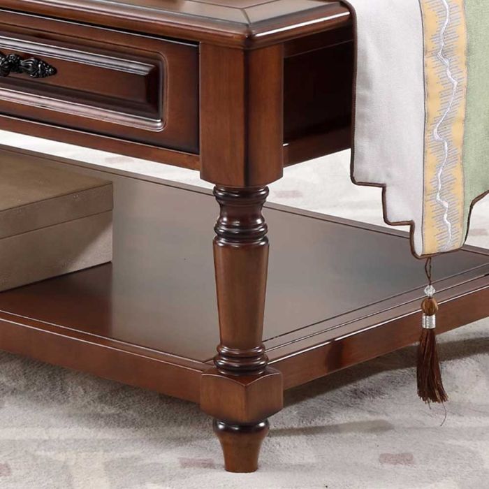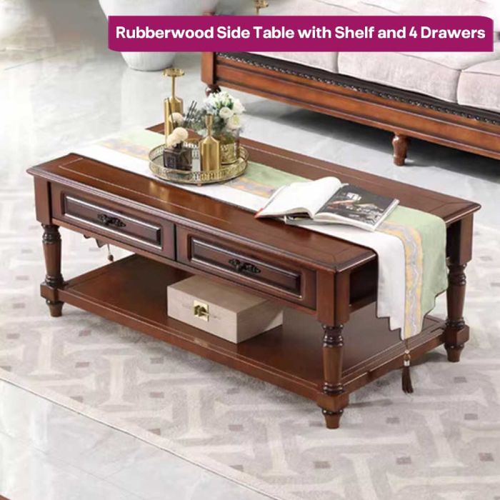 - طاولة جانبية من الخشب الصلب مع رف و4 أدراج - 130 × 70 × 53 سم