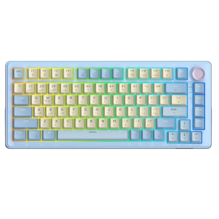 كيبورد ميكانيكال بتصميم 75% مدمج مع RGB واتصال ثلاثي وبطارية قوية، مثالي للألعاب والاستخدام اليومي.