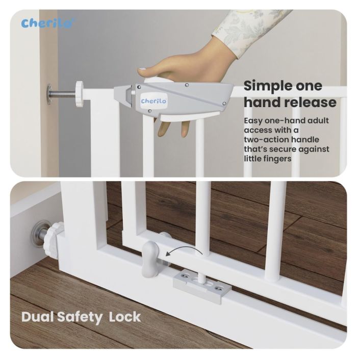 اجعل منزلك آمناً ومريحاً لطفلك الصغير مع حاجز الأمان هذا. يتميز بتصميم يثبت بالضغط دون الحاجة لأدوات أو حفر، مما يجعلها مثاليا ويسمح بتركيبها في دقائق! صُنع من الفولاذ المتين ويناسب فتحات الأبواب والسلالم بين 75-84 سم، لتوفر حاجزاً آمناً للمناطق الحيوية. يضمن نظام القفل المزدوج الأمان التام، بينما يسهّل مفصل الإغلاق التلقائي والمرور الواسع الاستخدام اليومي على البالغين. مزيج من الأمان والمتانة والتصميم العصري الأنيق.