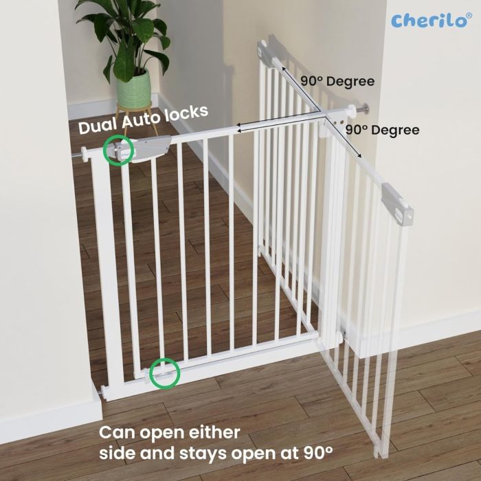 - حاجز أمان بإغلاق تلقائي للأبواب والسلالم