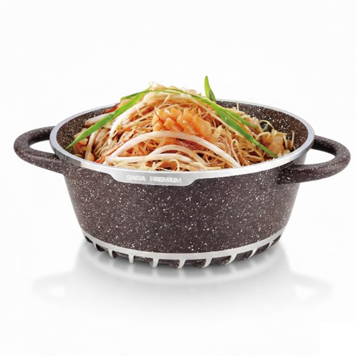 تألقي بمطبخ يجمع بين الفخامة والعملية بذكاء مع أواني طهي من الجرانيت التركي من Saga المكون من 17 قطعة. وبناءً على ذلك، يعتبر هذا الطقم الحل الأذكى في لطهي صحي وآمن بفضل سطحه الماربل غير اللاصق. بالإضافة إلى ذلك، يتميز بتصميم عصري وأداء احترافي بفضل التوزيع الحراري المتساوي. وعلاوة على ذلك، يأتي الطقم متكاملاً مع ملحقات الحماية وأدوات التوزيع، مما يجعله الخيار الأذكى والأكثر أناقة لكل بيت بذكاء شديد وبامتياز.