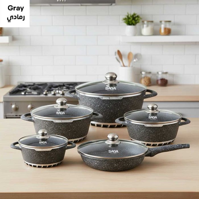 - طقم أواني طهي من الجرانيت 17 قطعة من Saga