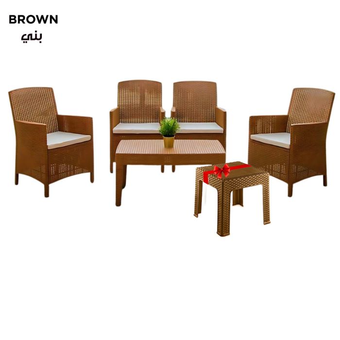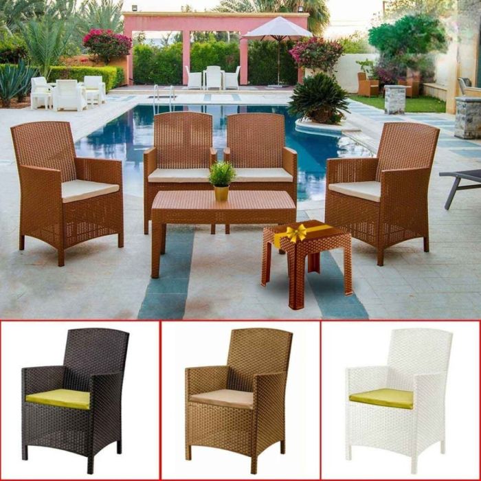 - طقم جلسة أنيق Havana من الرتان 4 كراسي وطاولة مستطيلة مع طاولة إضافية صغيرة مجاناً قياس 40×40 سم من Samba