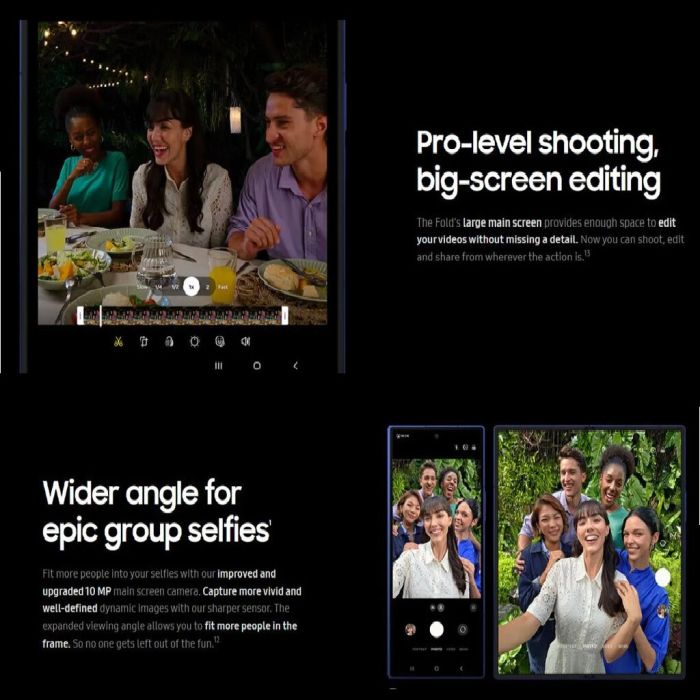 لأول مرة على هاتف Galaxy Z Fold، التقط صورًا مذهلة بكاميرا قوية بدقة 200 ميجابكسل. دع محرك ProVisual Engine من الجيل الجديد يُحسّن الألوان والتفاصيل لمزيد من الوضوح. ثم عدّل صورك باستخدام مساعد الصور بالذكاء الاصطناعي على الشاشة الكبيرة لتجربة غامرة