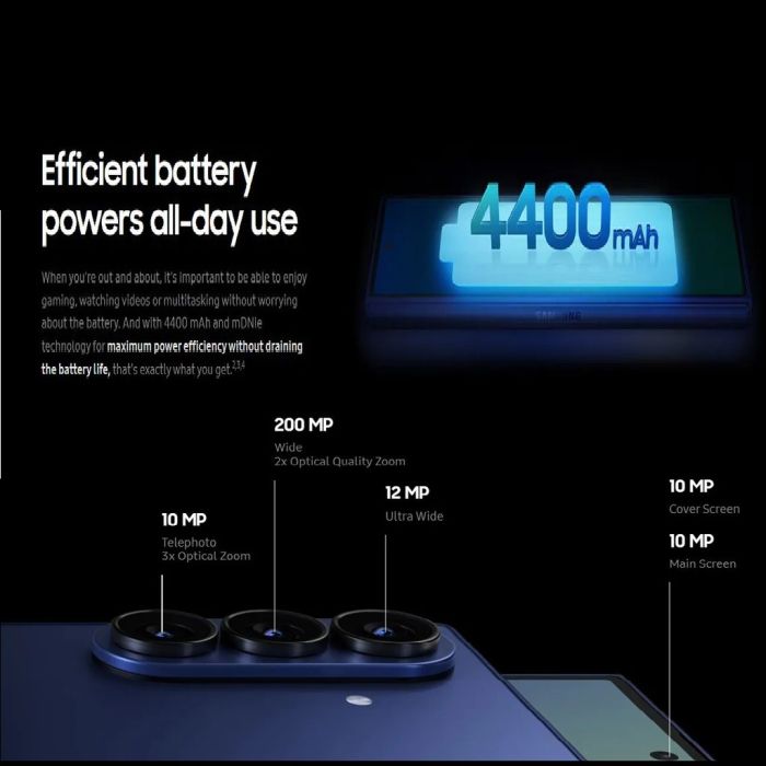 - كاميرا خلفية ثلاثية: 200MP رئيسية + 12MP واسعة + 10MP تقريب