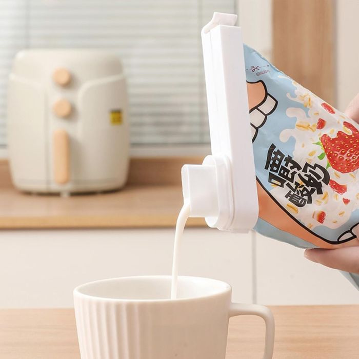 - مشبك قفل عبوات الطعام للمشروبات والمساحيق مع فوهة صب
