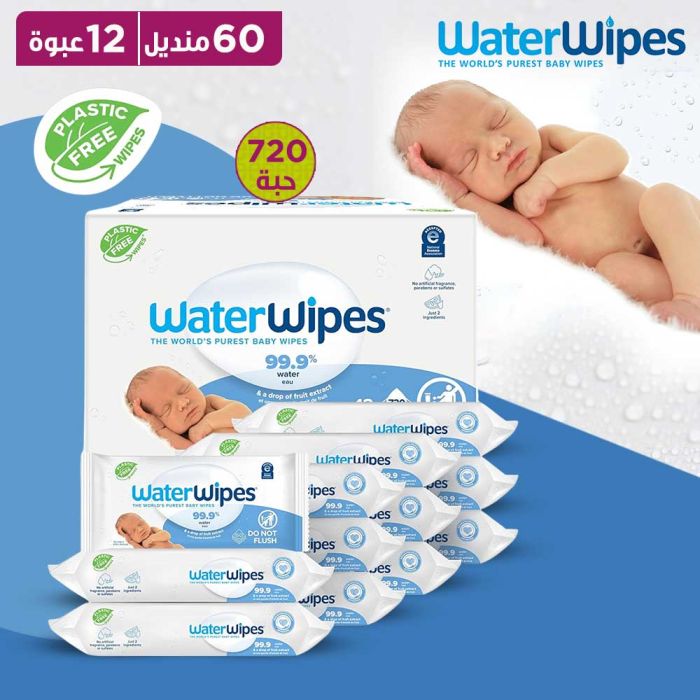 - مناديل مبللة لبشرة الأطفال الحساسة 12 عبوة × 60 منديل من Water Wipes