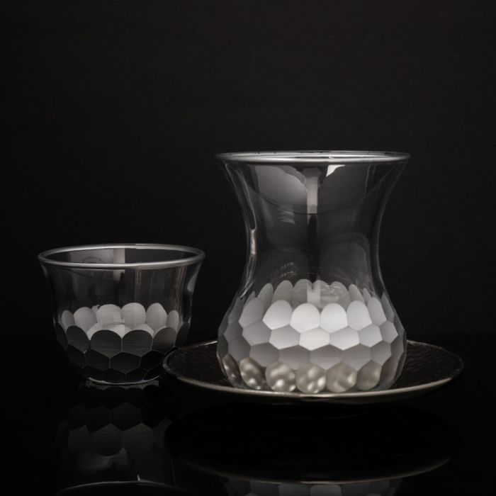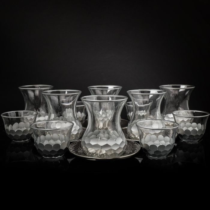 طقم فناجين قهوة و شاي مع أطباق صغيرة 18 قطعة نحاسي فضي