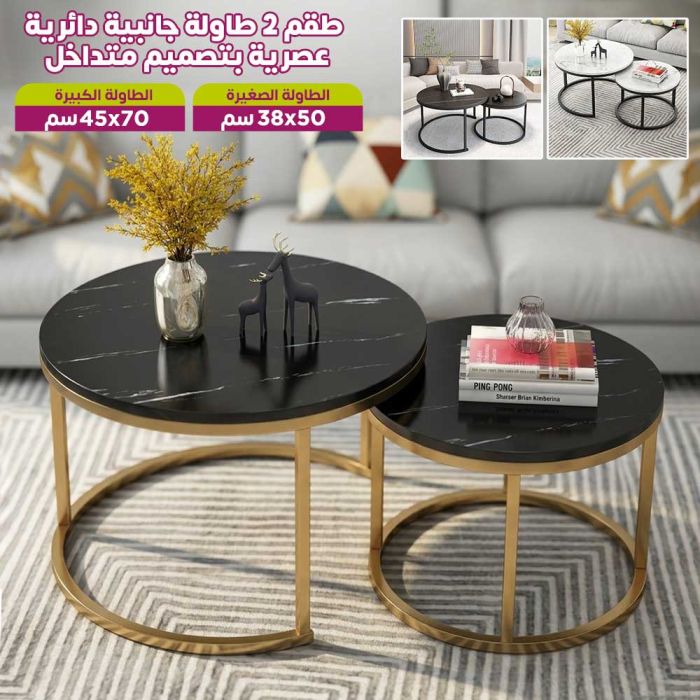 - طقم 2 طاولة جانبية دائرية عصرية بتصميم متداخل